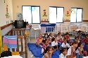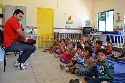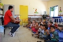 O prof. de música, Welerson Junio com a turma de crianças de 3 a 5 anos