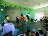 “Em terra de cego quem tem olho é rei” chamando os alunos do 8º ano com a música da “Dona baratinha”.