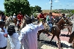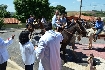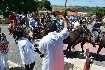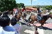 Dia 10 de abril, cavalgada e saída dos carreiros da fazenda Bagaço, de Antônio Idelfonso Araújo, (Tuti), em direção à igreja, onde houve a bênção do padre.