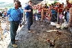 Ao meio dia, o almoço foi servido aos visitantes. Segundo Bernardes, a comissão arrecada alimentos na região, com o objetivo de obter fundos para a obras da igreja, mas, o valor cobrado representa apenas um valor simbólico para a festa.